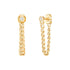 These finished 14-karat yellow gold post earrings feature a curb chain drop that connects the post to the ear nut, creating a hoop look. Each earring is set with a round white diamond in a bezel setting, a total of two diamonds (I2 clarity/G–I color; 0.1CTTW) per pair. The friction post features a groove that helps provide the most secure and comfortable fit.
